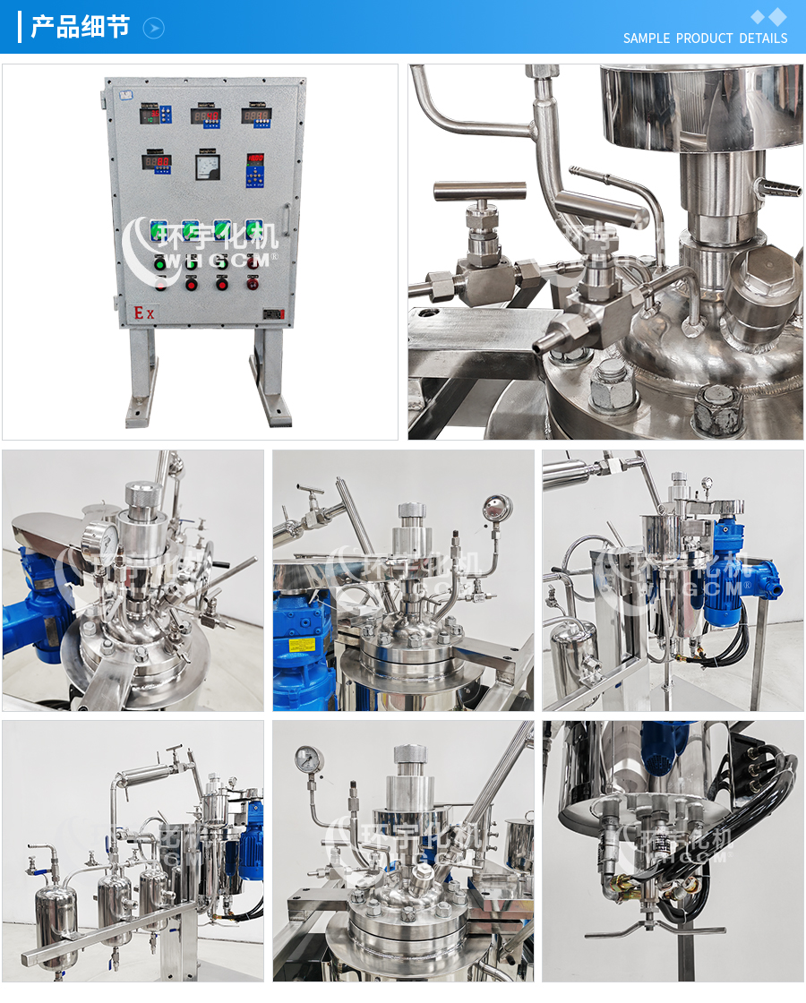 其他附件 如果用戶在釜蓋、釜體開口、內(nèi)部結(jié)構(gòu)、壓力高低、攪拌槳葉、及增加其他輔助裝置(如冷凝回流裝置、冷凝器、恒壓加料罐、接收裝置)等有特殊要求,可完全按用戶的要求加工制造