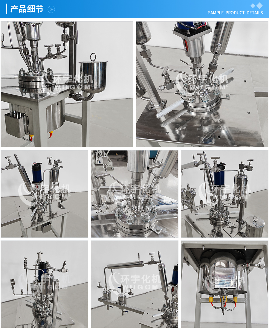 常規(guī)釜蓋開口 氣相口配針形閥,液相口配針形閥及釜內(nèi)插底管,固體加料口配絲堵,測控溫口配鉑電阻,壓力表安全爆破口配壓力表及安全防爆裝置,釜內(nèi)冷卻盤管進(jìn)、出口配水咀